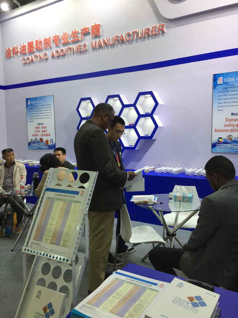 上周,2017年中國國際涂料展Chinacoat在上海新國際博覽中心舉辦,立達化工作為參展商,共派出7人參加展會,展位面積28平米,展示助劑樣品幾十種共上千瓶,吸引了大量中外客戶參觀洽談,并有客戶現(xiàn)場下單,成果顯著。